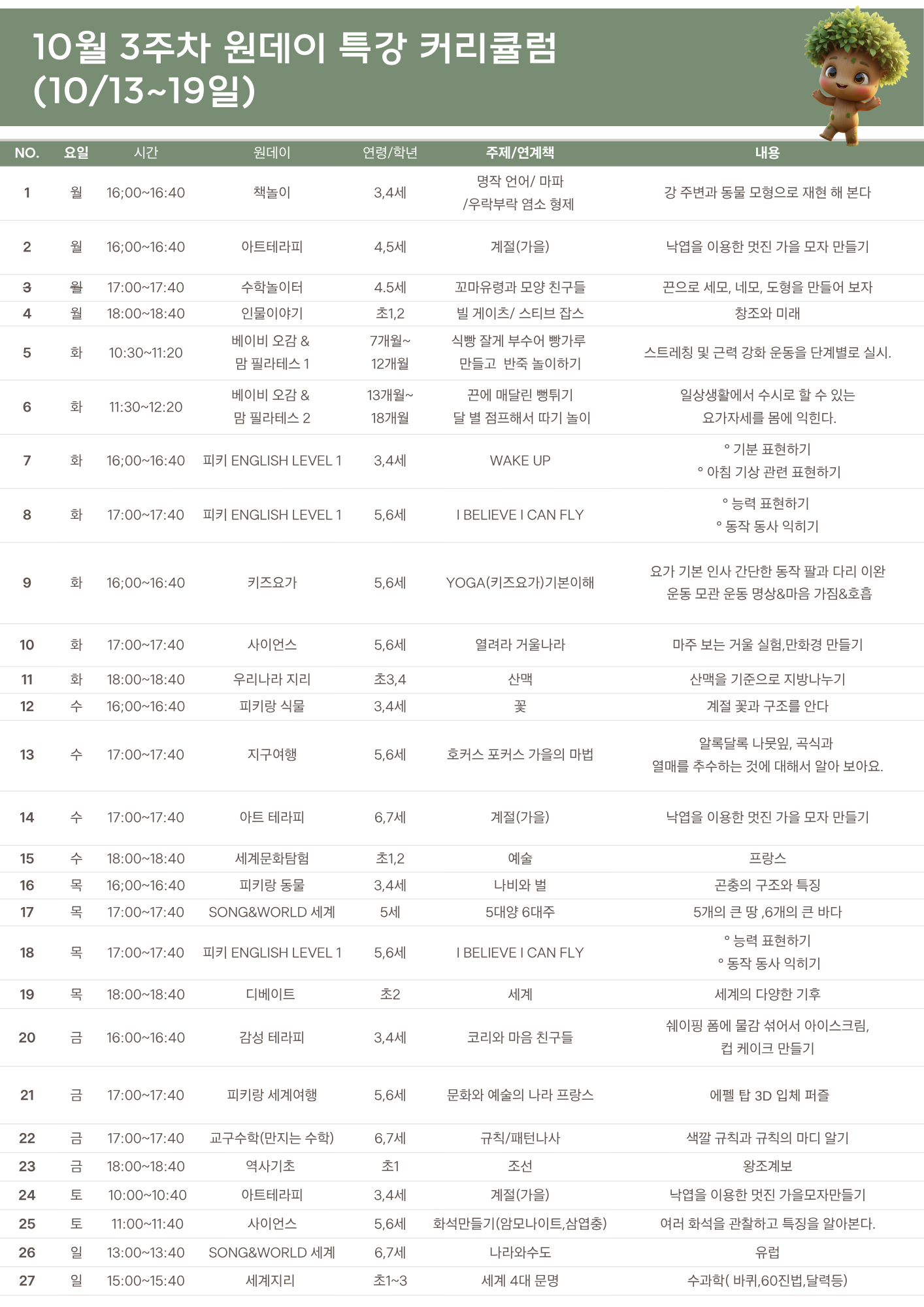 피키트리에서 4세~5세 / 6세~7세 대상으로 영어클래스가 오픈되었어요~ 화요일에 첫 수업이 있었어요~